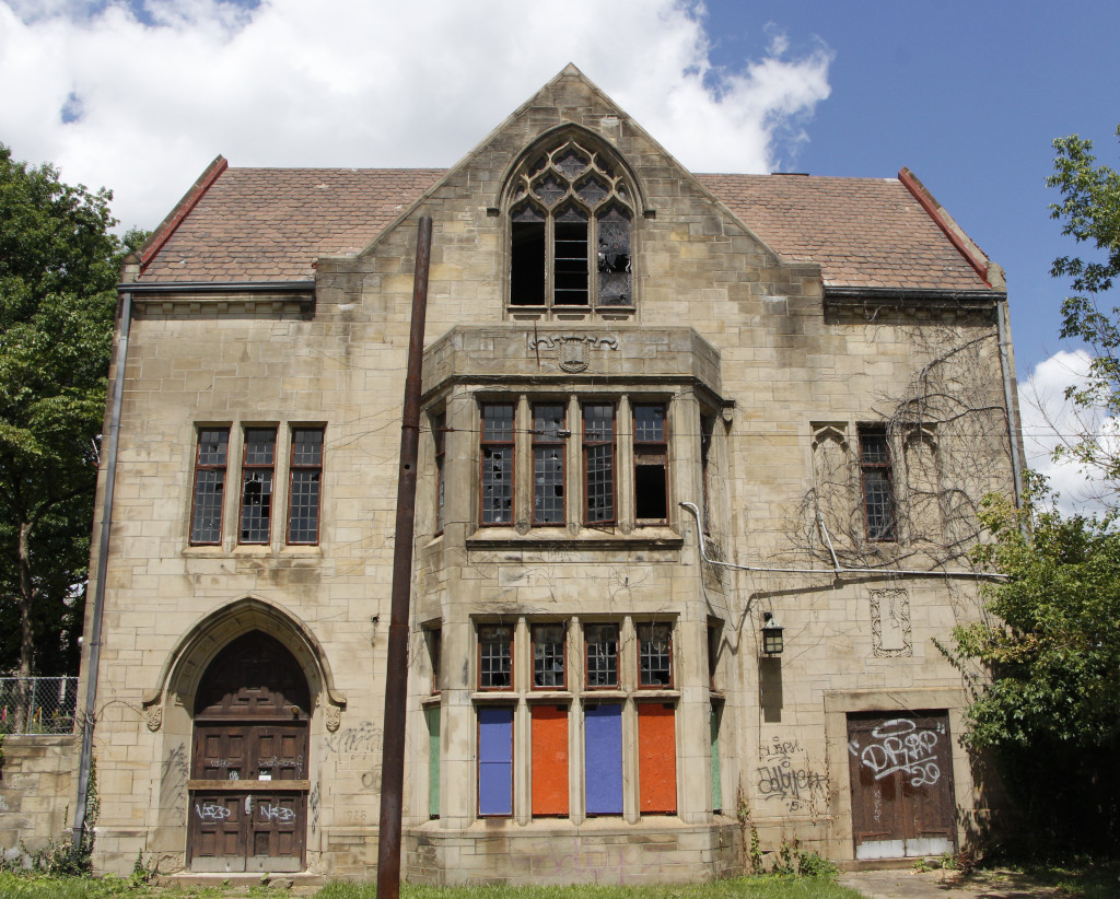 In 1929, the complex expanded again. Architect Lawrence Wolfe designed the educational wing that extends from the south side of the original sanctuary to Franklin Ave. Again the expansion sought to integrate with the existing building. The educational wing is constructed with the same rusticated stone along Mulberry Street, while details begin to vary more as the building stretches to Franklin Avenue.