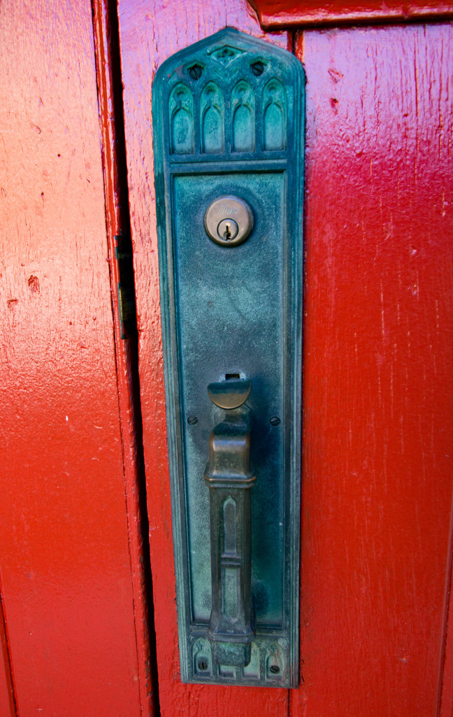 The door handle represents attention to architecture detail. It has motifs in keeping with the overall architecture.