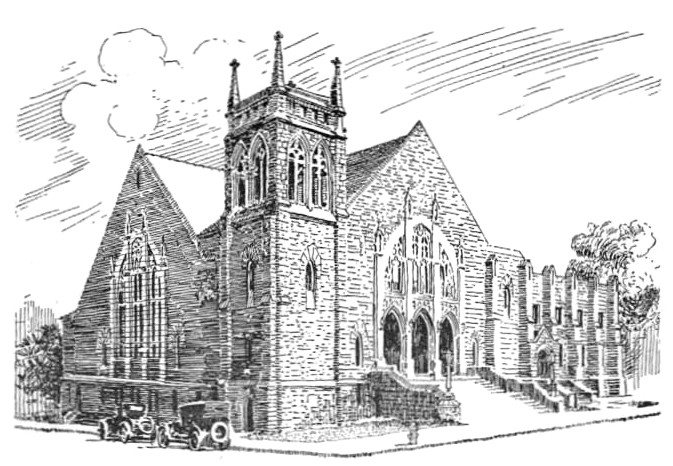 By 1910 the congregation had grown to 400 members with an equal number of children in Sunday school. The need for additional space prompted the trustees to plan for a complete church. This would include an auditorium and Sunday school rooms. It was the trustees’ judgement to undertake only part of the project. The original chapel was transformed into an auditorium with classrooms on the main floor and balcony level, thus making space for Sunday school and worship. Additions to the front and rear of the original building gave additional space and also set the tone for the future exterior design of the church. The altered building was dedicated November 26, 1911. During the construction period services were held in a circus tent erected on the corner lot on the opposite side of Mifflin Avenue. (The white brick home now there was built by the Capper-Peterson family and Charles Capper lived his last days there.) Eight ministers served the congregation until 1921 when Rev. McKnight arrived, at which time our membership was 480. Rev. McKnight envisioned a growth in four years to one thousand. It became plain that the increase in membership necessitated the need to complete the building plans presented in 1911.