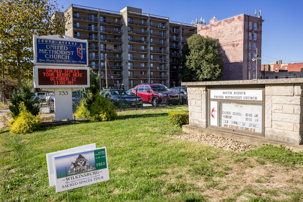 ◾ Mulberry Presbyterian Church, 710 Mulberry Street (opposite South Avenue Methodist Church). Though awarded a Historic Landmark Plaque by the Pittsburgh History and Landmarks Foundation, the building is vacant and vandalized. The Civic Arts is the recent conservator of this historic former church. They are seeking suggestions on how the building might serve the community.